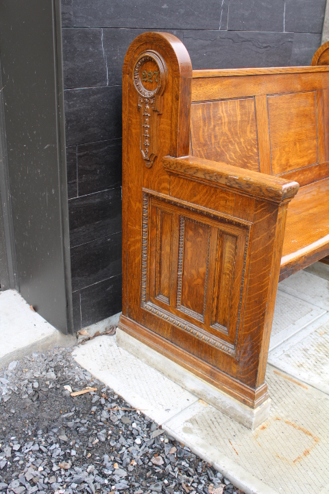 Caissons moulurés sur chaque côté du banc, panneaux soulevés dans le dos du banc