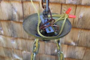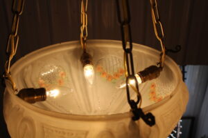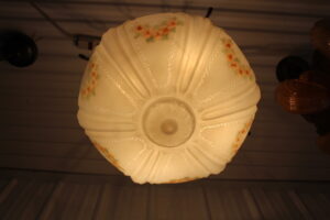 Quelques petits éclats de verre sur le bord du collet comme on souvent sur ce type de luminaire, à cause des crochets qui ont été déplacer ou enlever.