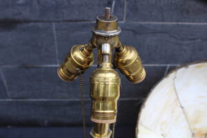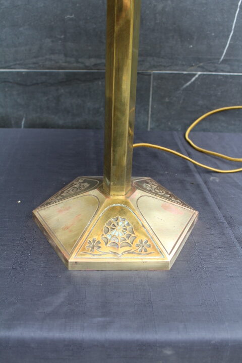 Base en brass signée en dessous, 3 sockets, filage refait avec du fil de coton comme à l'origine