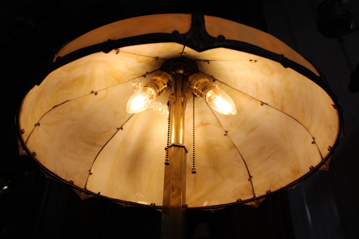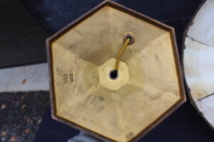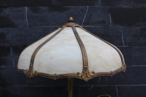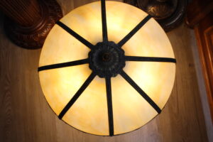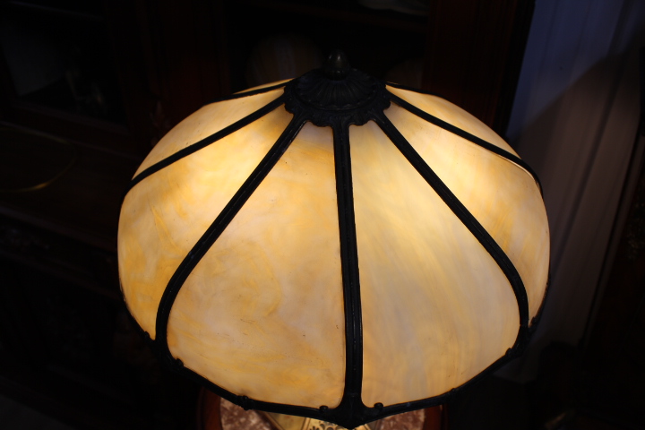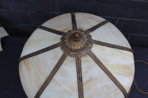 Gros abat-jour rond à 8 panneaux de verre courbés, 2 ont été remplacés avec le temps ( difficile à voir du dessus)